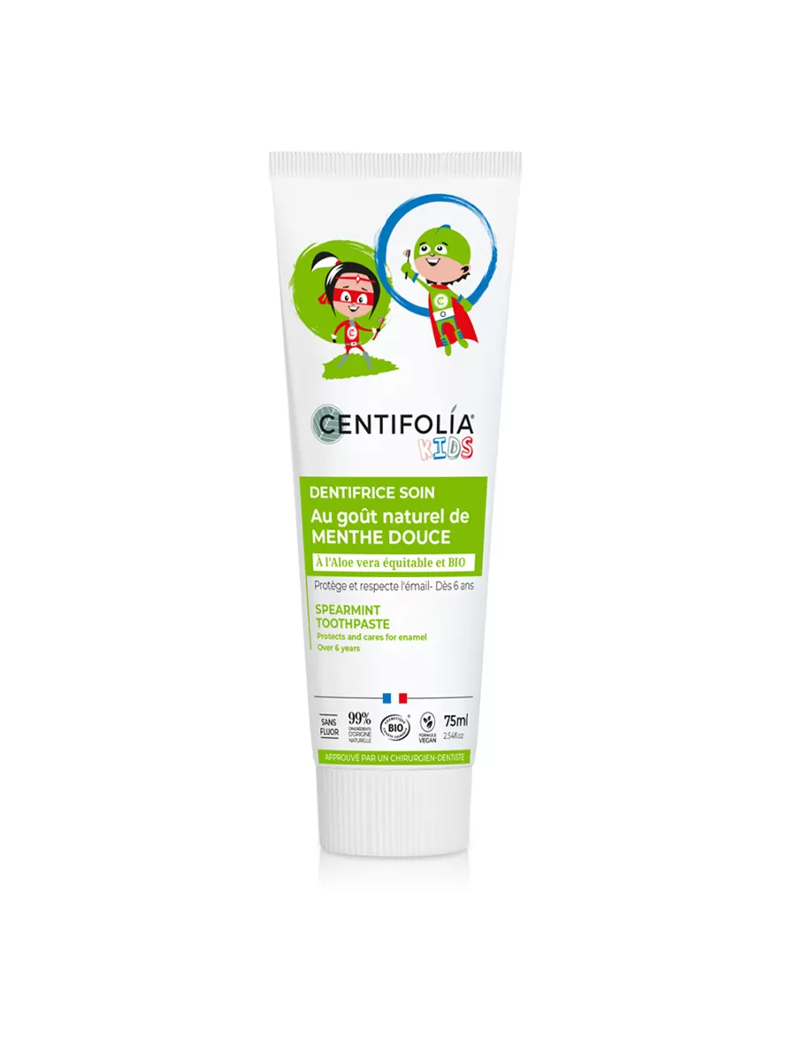 Za svoj asortiman dječjih pasta za zube, Centifolia je odabrala najnježnije aktivne sastojke koje priroda može ponuditi. Formula blagog okusa mente posebno je dizajnirana za njegu dječjih mliječnih zuba*. Ova nježna pasta za zube čisti, štiti i hrani zubnu gleđ. Pomaže u zaštiti osjetljivih desni vaše djece za savršenu oralnu higijenu. Čišćenje zuba čini dječjom igrom.
